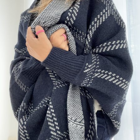 Poncho blu in alpaca